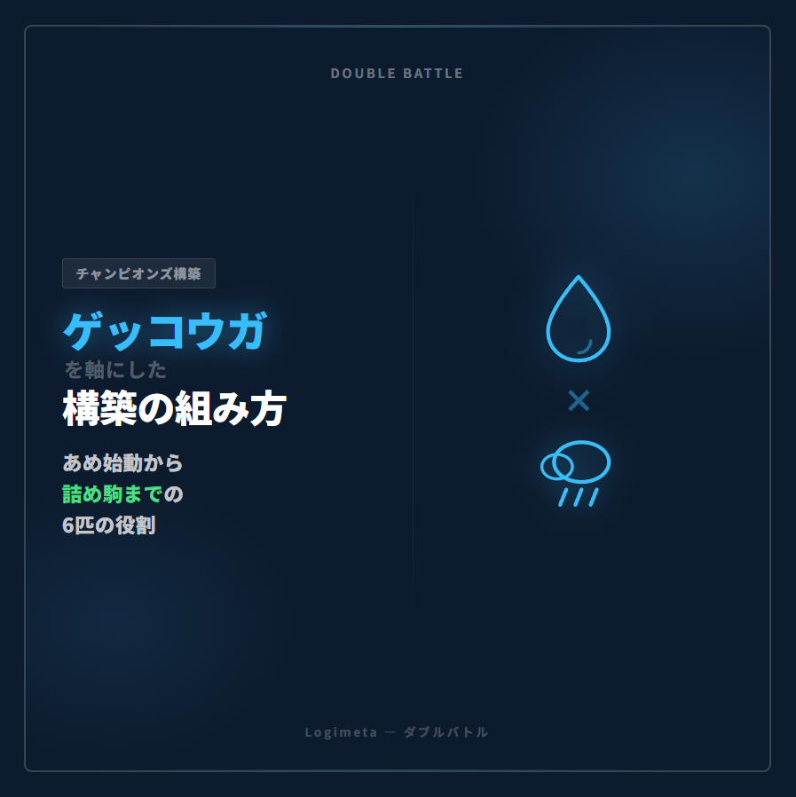 ダブルバトルでメガゲッコウガを使いたいとき、最初に悩むのは「どう支えるか」ではなく「なぜゲッコウガが強いのか」を言語化できていないことが多い。すばやさが高く、みず技の通りが良く、メガシンカ後はタイプまで変わる。この3点を軸に構築を組むと、6匹の役割が自然に決まる。